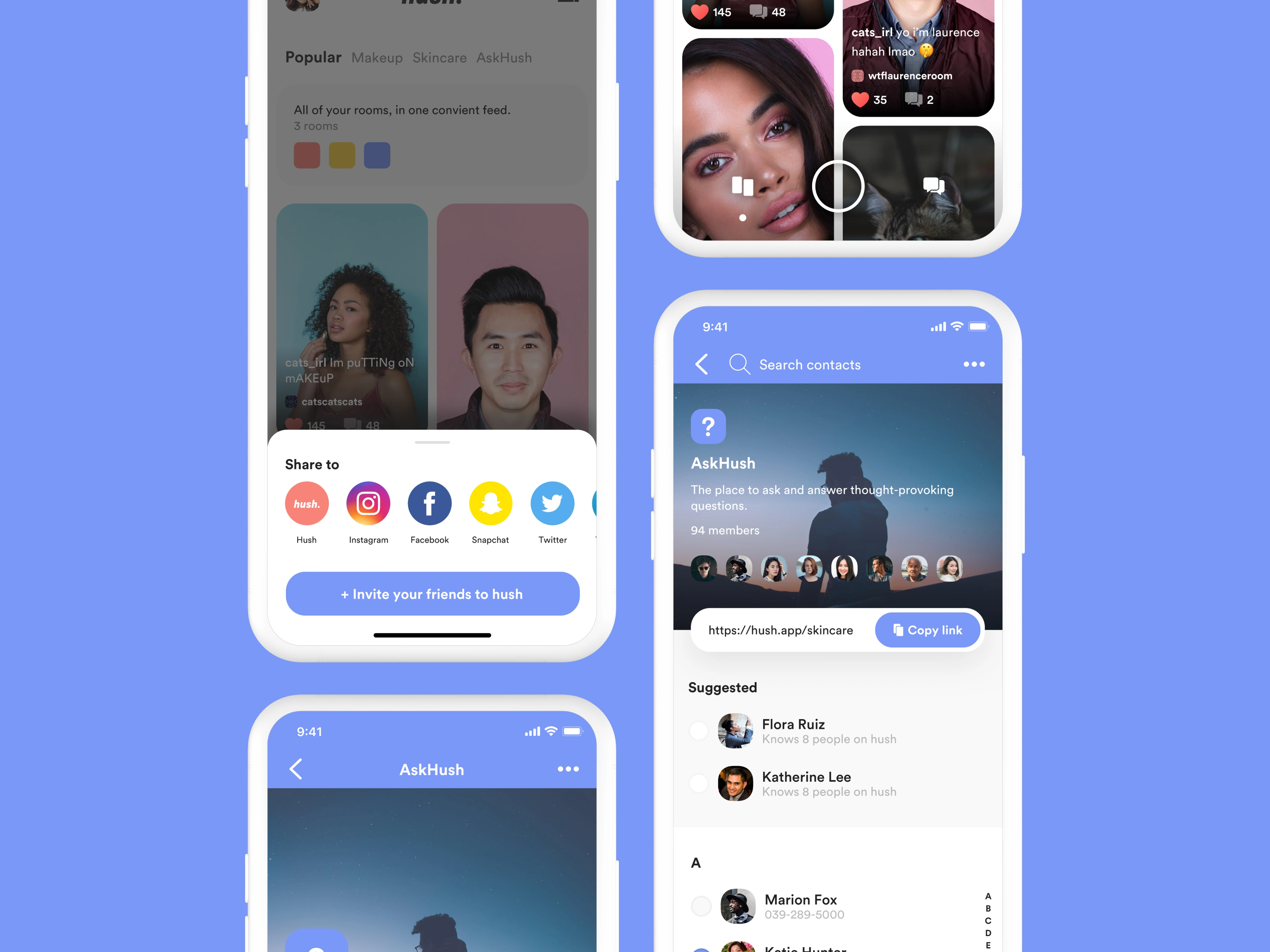 The first set of decisions was about scope and sequencing. Android came first because it was the clearest revenue unlock, and shipping it well meant resisting the temptation to port the iOS design directly. Android users have different interaction patterns and platform conventions; the app was designed to feel native to the platform while sharing a coherent visual language with iOS and web. On the brand side, the refresh prioritized sharpening what was already working — the warmth and accessibility of the Hush voice — over a dramatic overhaul. The palette was refined rather than replaced, and typography choices were made with system-level consistency in mind across all three surfaces. One deliberate tradeoff: rather than pushing toward a more editorial, high-fashion aesthetic that might have read as more premium, the brand stayed accessible and high-energy, because Hush's actual user base rewarded that register. Execution was structured around design documentation as a forcing function — every major decision was written up, which kept cross-functional communication tight and gave the growing creative team a shared reference point. The influencer batching tool was designed in parallel with the consumer product, treating it as a first-class design problem rather than an internal hack; the result was a 50% reduction in deal closure time and the ability to process 100+ contracts in a single cycle. In the second year, as the team scaled to three creatives, the design system and documentation built in year one became the onboarding substrate — new team members could contribute at quality without a long ramp.