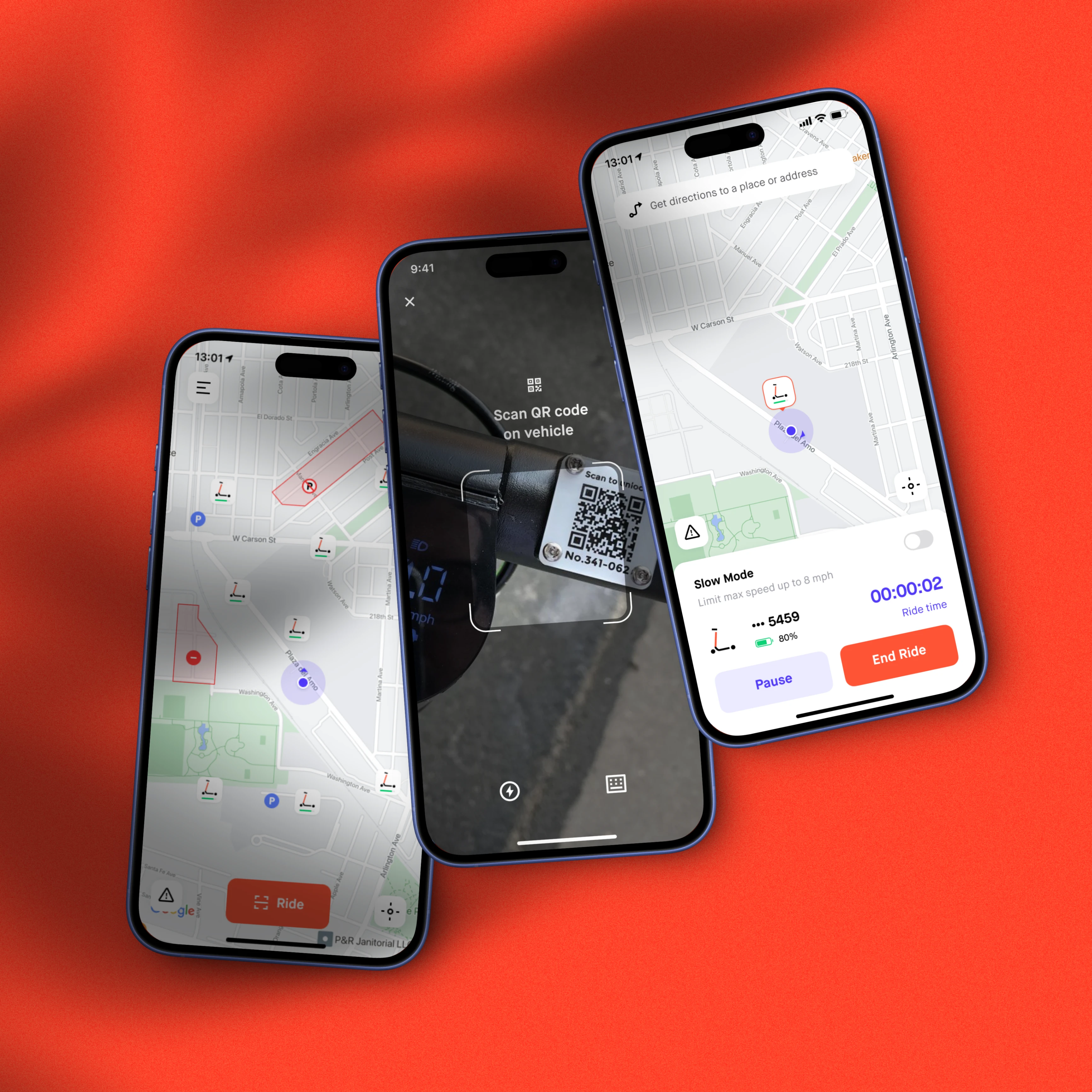 The consumer mobile app was designed around the critical rider path: find a scooter, unlock it, ride safely, end the trip correctly. Every step in that flow was examined for friction. The visual language established in the brand work carried through into the app UI — the same typographic system, the same color logic — so the product and the brand read as one thing, not two teams working in parallel.