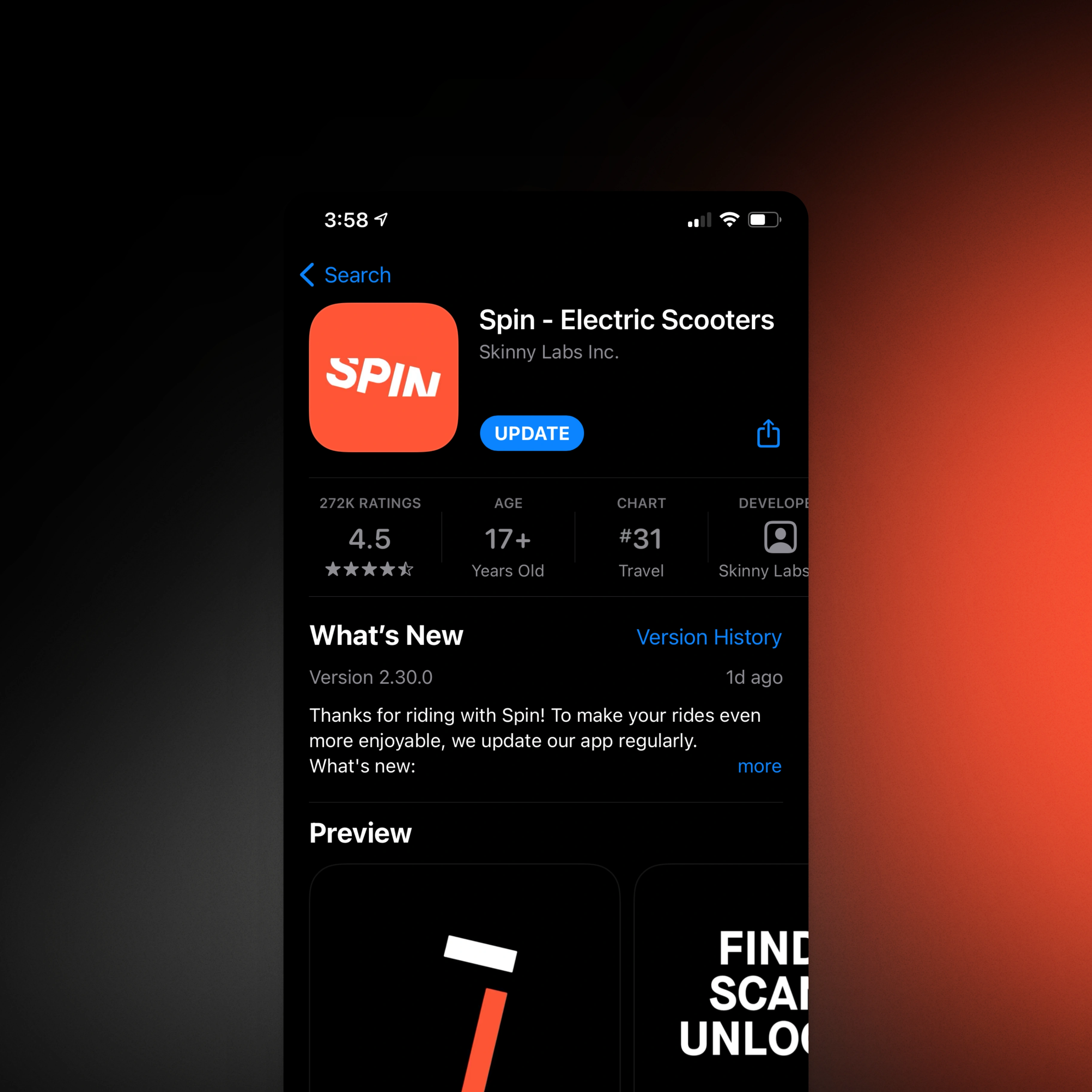 The design work gave Spin a coherent, scalable identity at a moment when the company was operating across dozens of markets simultaneously. City partners and campus administrators encountered a consistent, professionally executed brand at every touchpoint — from the initial pitch through daily operations — which directly supported Spin's positioning as the institutional-grade operator in the category. The mobile app shipped with a visual and UX foundation that riders and operations teams could rely on across a rapidly expanding feature set. Internally, the component library and design system meant the team could ship new surfaces — city landing pages, program materials, in-app features — without rebuilding from scratch each time. That operational efficiency mattered at a company growing as fast as Spin was. By the time Spin merged with Bird to become the largest micromobility operator in North America, the design infrastructure built through this engagement was load-bearing: it was the system the expanded team inherited and continued to build on.